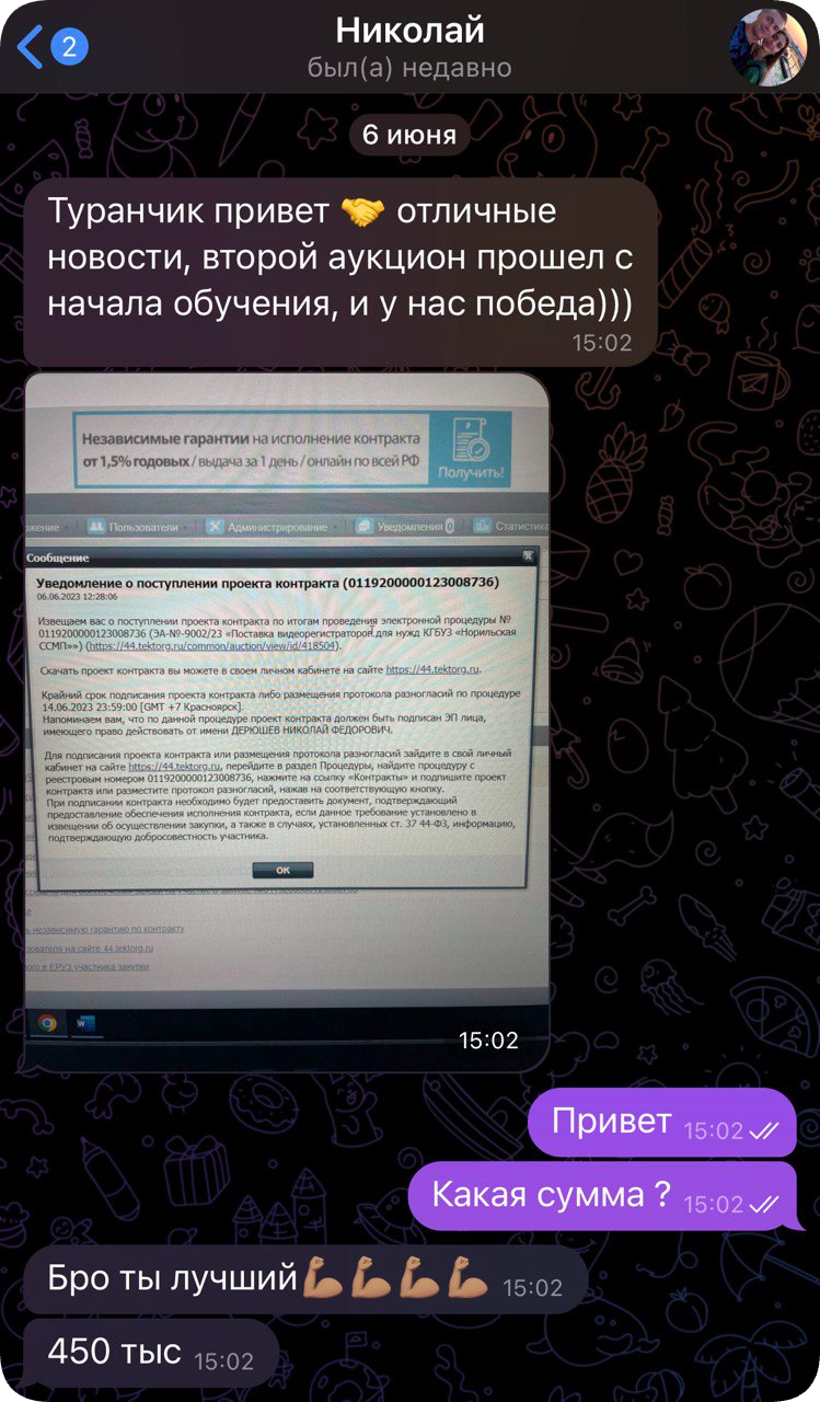 Личная работа с Тураном 1 мес. + 5 тендеров за ручку